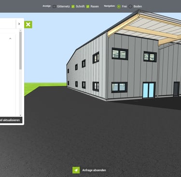 Unser Kunde, ein führendes Unternehmen im Bereich Hallenbau, stand vor der Herausforderung, potenziellen Kunden eine intuitive und interaktive Möglichkeit zu bieten, Hallen nach ihren spezifischen Anforderungen online zu gestalten und zu visualisieren. Die Zielsetzung war klar: Die Entwicklung eines benutzerfreundlichen 3D-Konfigurators, der es Kunden ermöglicht, Größe, Materialien, Farben und weitere Ausstattungsmerkmale ihrer Wunschhalle in Echtzeit anzupassen und zu visualisieren.