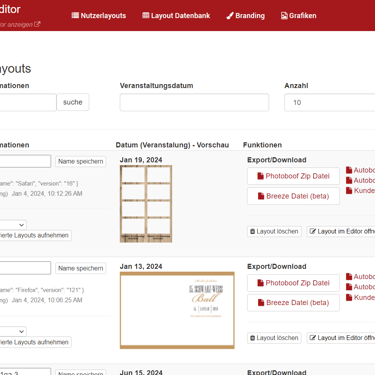 Der Layouteditor ist eine Online-Software zur einfachen Erstellung von Collagen bzw. zur Bearbeitung von Drucklayouts. Der Nutzer kann aus einer Anzahl von vorkonfigurierten Layouts wählen und diese schnell und einfach an individuelle Bedürfnisse anpassen.