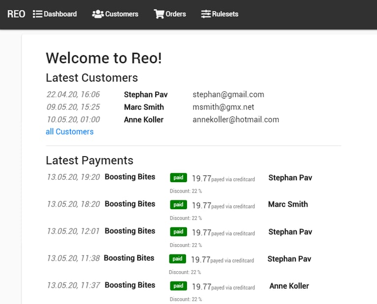 Für die REO Apps GmbH wird eine Shopify Applikation entwickelt, welche den automatisierten Zahlungsverkehr für wiederkehrende Zahlungen ausführt. Als Zahlungsanbieter kann zwischen Paypal, Kreditkarte und Sepa.NET gewählt werden. Über das Backend können ohne weitere Programmierkenntnisse die Zahlungsbedingungen je nach Zyklus und Produkt festgelegt werden.